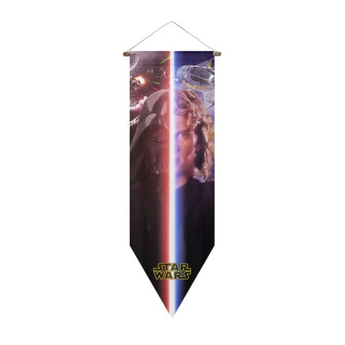 پرچم آناکین اسکای واکر – دارث ویدر از دنیای جنگ ستارگان (Star Wars) با جنس مخمل آستردار باکیفیت، چاپ باکیفیت و بادوام، دور دوخت باکیفیت و دارای چوب و طناب آویز.