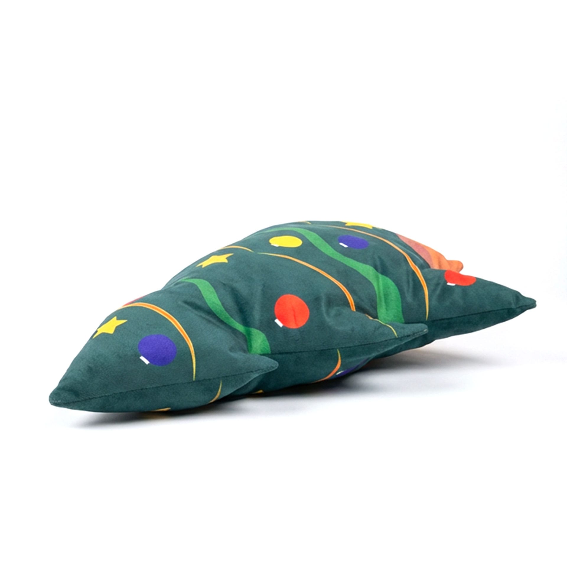 در کوسن ویژهی درخت کریسمس (Christmas Tree)، همین روح جاودانه و افسانهای درخت، نه در قالب چاپ یا تصویر، بلکه در خود شکل فیزیکی کوسن حضور دارد. این کوسن بهطور کامل برشخورده، دوخته و فرمدهی شده تا شکل یک درخت کریسمس واقعی را به خود بگیرد. خطوط خمیده و لایهلایهی پارچه، انحناهای نرم و دقیقی دارد که شاخههای درخت را تداعی میکند؛ گویی یک درخت کاج نوئل — اما نرم، لطیف و قابل آغوش — را در خانه روی مبل یا کنار درخت اصلی قرار دادهای. سطح مخملی آن نهتنها جلوهای لوکس و زمستانی ایجاد میکند، بلکه لمسش یادآور لطافت برگهای کاج است، اما بیخار، گرم و دلنشین.