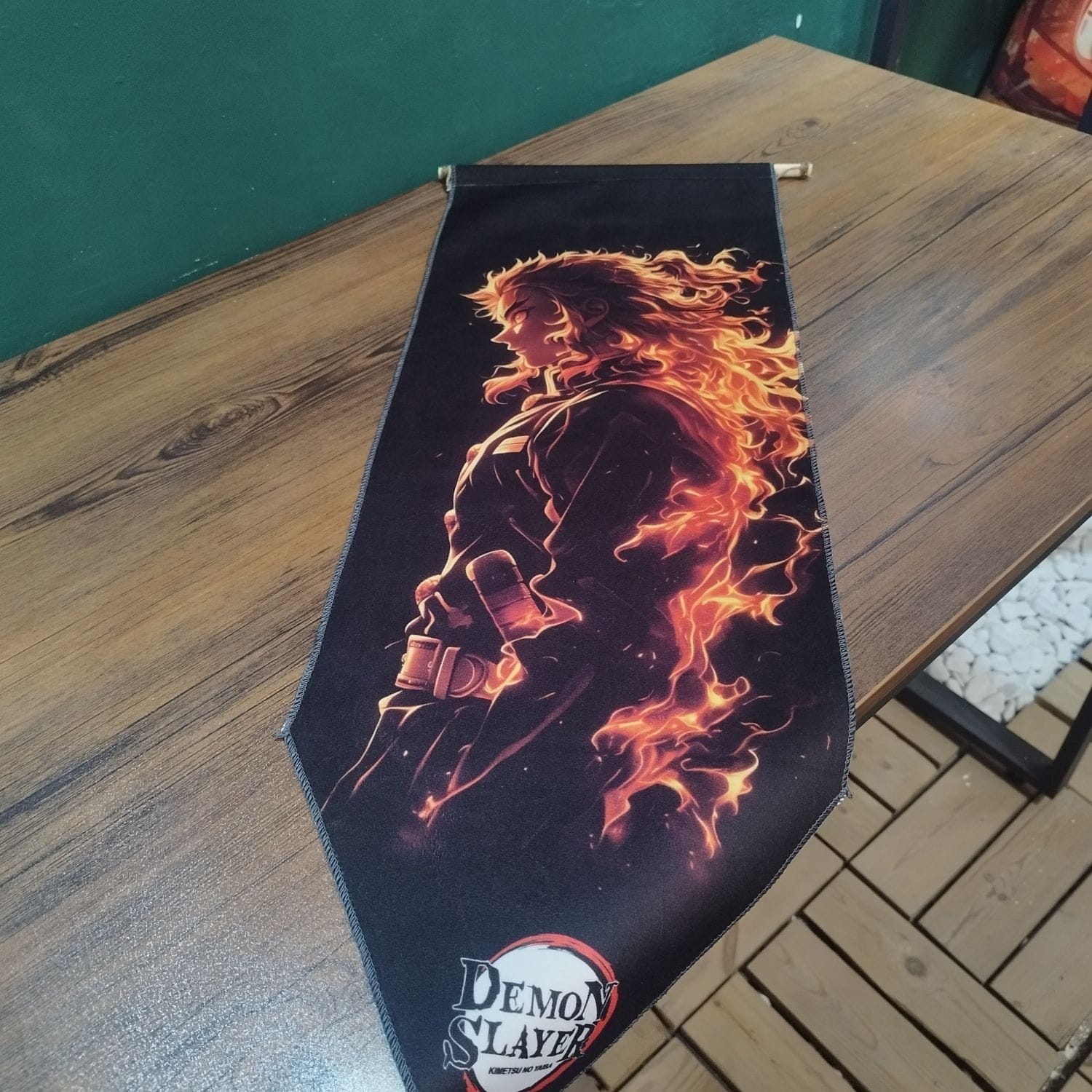پرچم دیمن اسلیر – کیوجورو رنگوکو از مجموعه دیمن اسلیر (Demon Slayer) با جنس مخمل آستردار باکیفیت، چاپ باکیفیت و بادوام، دور دوخت باکیفیت و دارای چوب و طناب آویز
