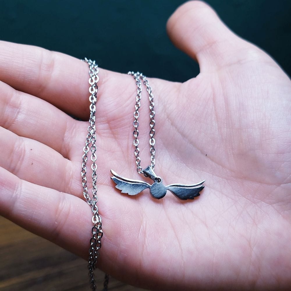گردنبند استیل گوی زرین از مجموعه هری پاتر (Harry Potter). این گردنبند از جنس استیل ضد زنگ و ضد حساسیت (با ضخامت 2 میلی متر) ساخته شده است که به همراه آویز و زنجیر 60سانتیمتری استیل ارائه میگردد.