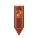 پرچم گریفیندور با رنگهای قرمز و طلایی مزین شده است؛ رنگهایی که نمایانگر آتش دل، شکوه و نجابتاند. در مرکز پرچم، تصویر باشکوه شیری طلایی دیده میشود که در حال غرش یا حمله است. شیر، شاه جانوران، نماد قدرت، شجاعت، و رهبری است و بهخوبی روحیهی جنگجویانه و دلیرانهی گریفیندوریها را به تصویر میکشد. این پرچم در تالار عمومی گریفیندور، در جشنها، مسابقات و لحظات سرنوشتساز، برافراشته میشود؛ نشانی از افتخاری که نسل به نسل در این گروه جریان دارد.