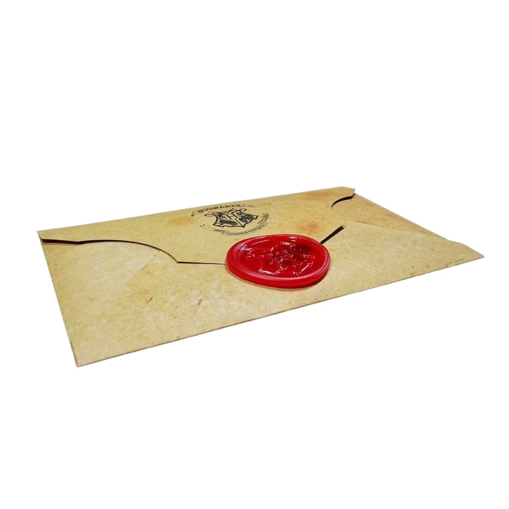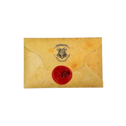 وقتی به پاکت نگاه میکنی، با مُهر مومی هاگوارتز روبهرو میشوی؛ مُهری برجسته با نماد معروف مدرسه. این مهر نه یک تصویر چاپی معمولی، بلکه یک جزئیات کلکسیونی است که احساس ارزشمند بودن نامه را دوچندان میکند.