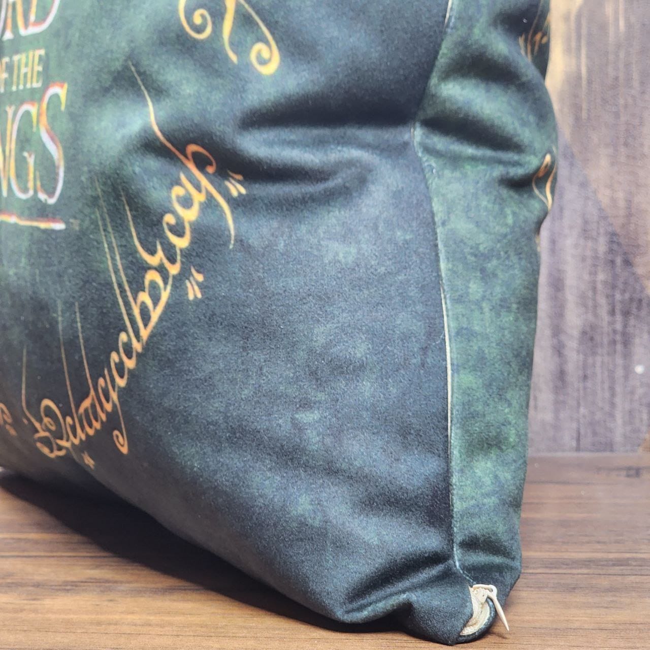 کوسن ارباب حلقه ها با متن حلقه یگانه از دنیای تالکین، چاپ باکیفیت و بادوام بر روی مخمل آستردار باکیفیت، پر شده با بهترین الیاف، قابل شستوشو و دارای زیپ