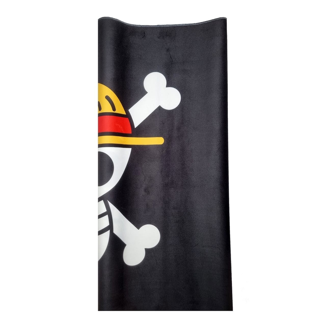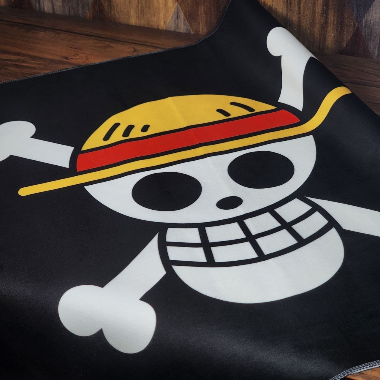 پرچم دزدان دریایی کلاه حصیری لوفی از جهان وان پیس (انیمه) با جنس مخمل آستردار باکیفیت، چاپ باکیفیت و بادوام، دور دوخت.