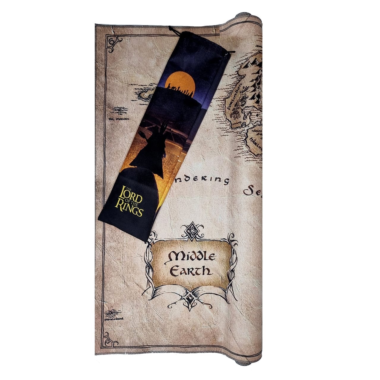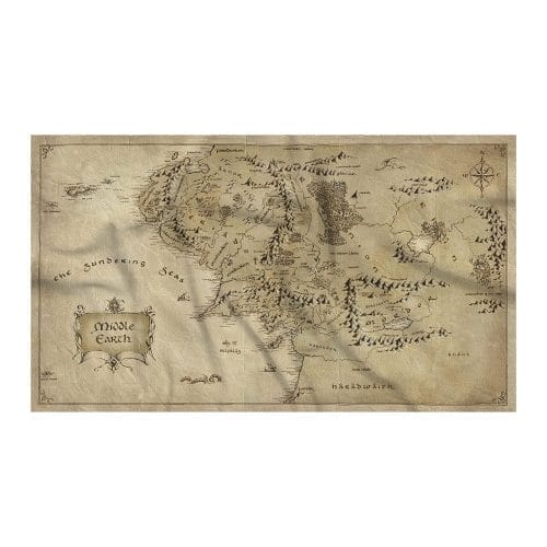 نقشه سرزمین میانه از جهان ارباب حلقهها (تالکین) با جنس مخمل آستردار باکیفیت، چاپ باکیفیت و بادوام، دور دوخت باکیفیت، دارای کیف مخمل اختصاصی