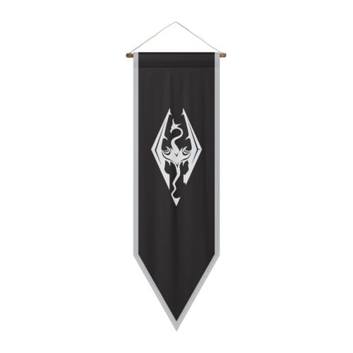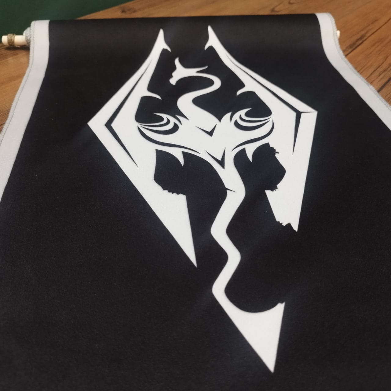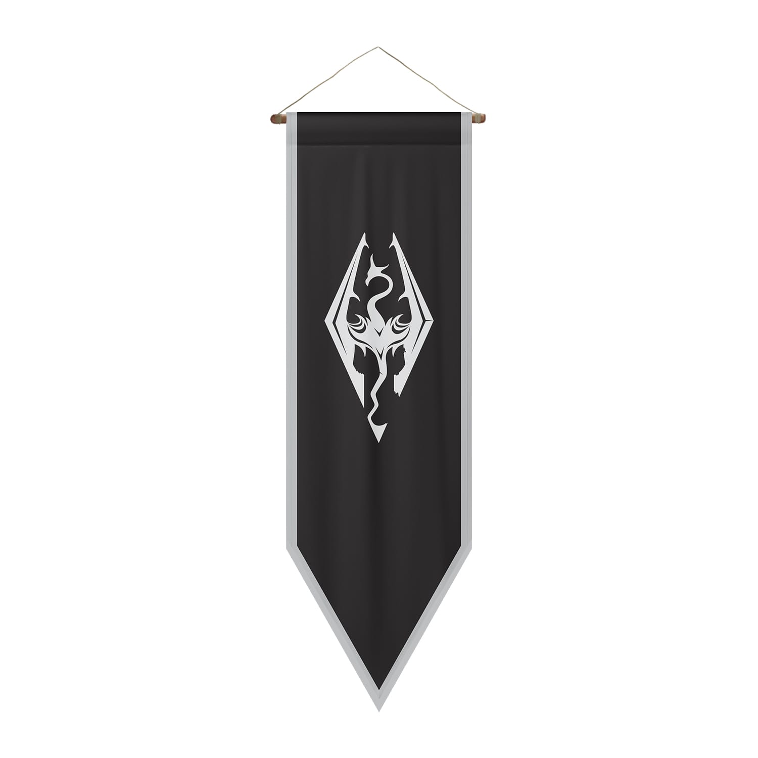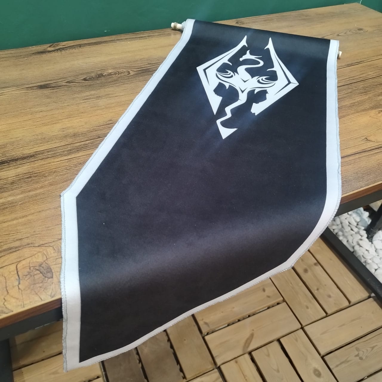 پرچم اسکایریم از جهان الدر اسکرولز (The Elder Scrolls) با جنس مخمل آستردار باکیفیت، چاپ باکیفیت و بادوام، دور دوخت باکیفیت و دارای چوب و طناب آویز