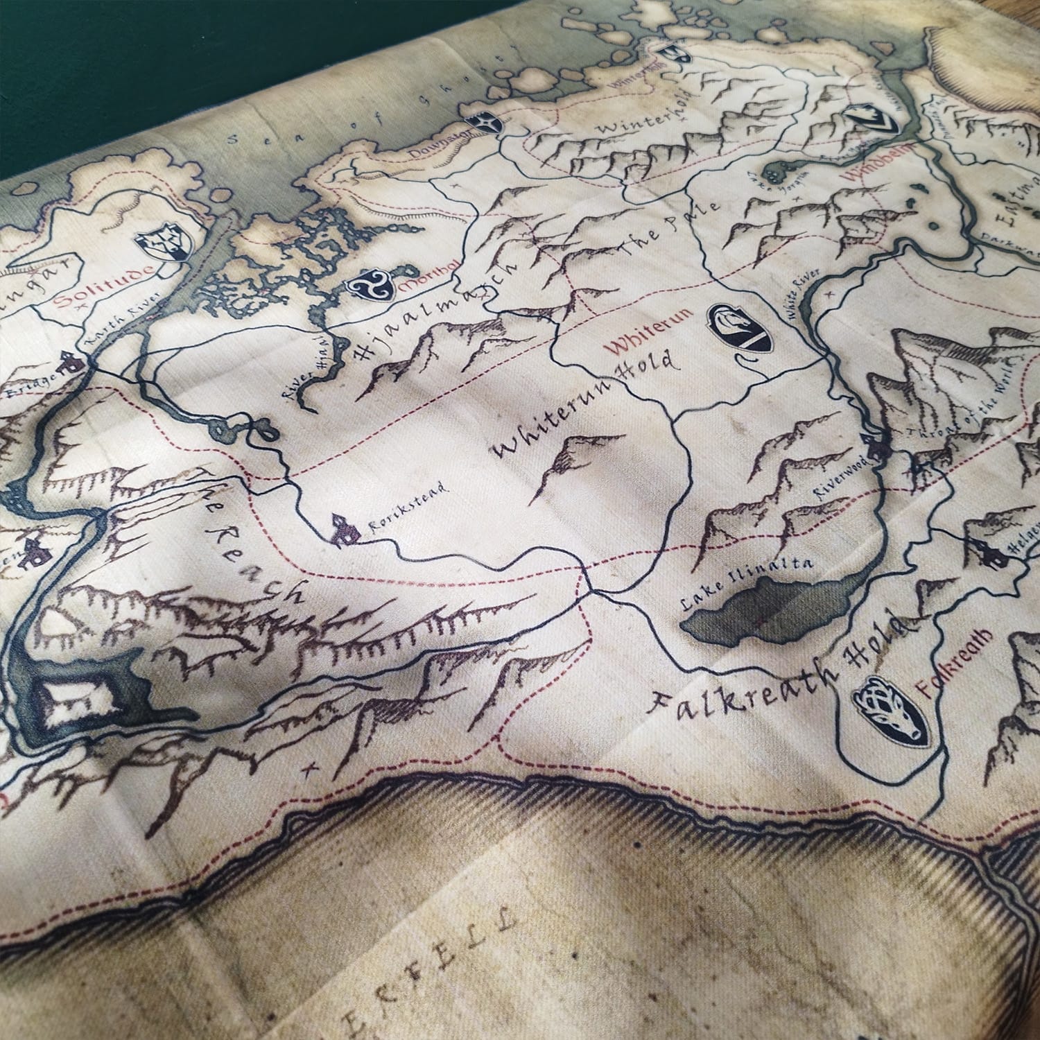 نقشه اسکایریم از جهان الدر اسکرولز (The Elder Scrolls) با جنس مخمل آستردار باکیفیت، چاپ باکیفیت و بادوام، دور دوخت باکیفیت