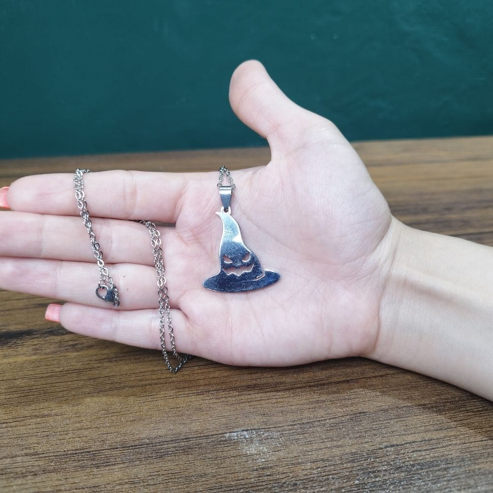 گردنبند استیل کلاه گروهبندی از مجموعه هری پاتر (Harry Potter). این گردنبند از جنس استیل ضد زنگ و ضد حساسیت (با ضخامت 2 میلی متر) ساخته شده است که به همراه آویز و زنجیر 60سانتیمتری استیل ارائه میگردد