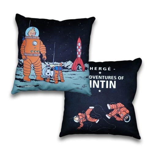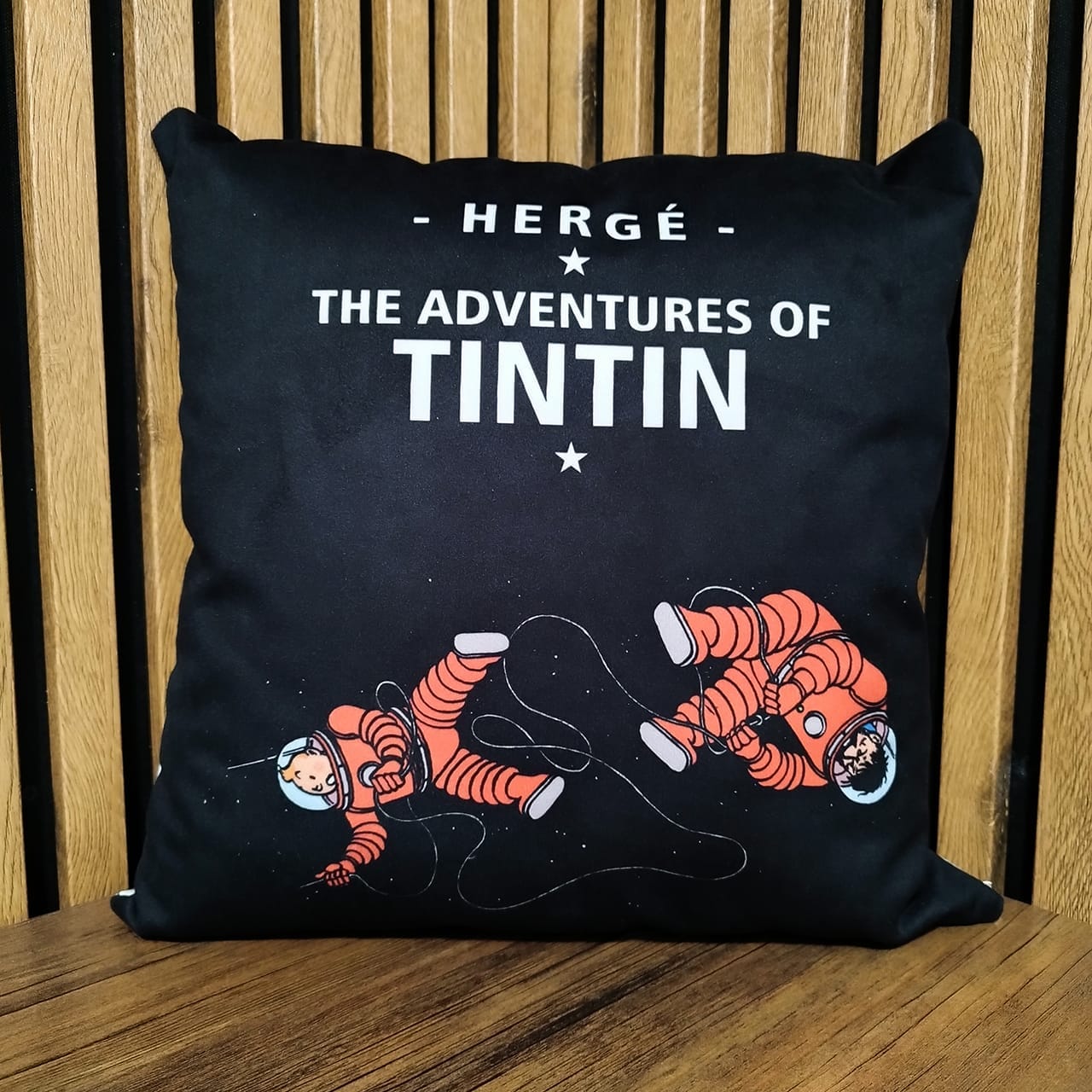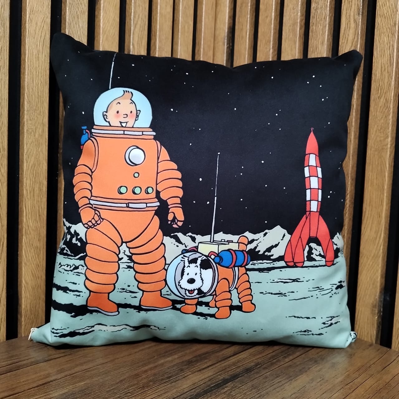 کوسن تن تن روی ماه همراه با میلو و کاپیتان، چاپ باکیفیت و بادوام بر روی مخمل آستردار باکیفیت، پر شده با بهترین الیاف، قابل شستوشو و دارای زیپ