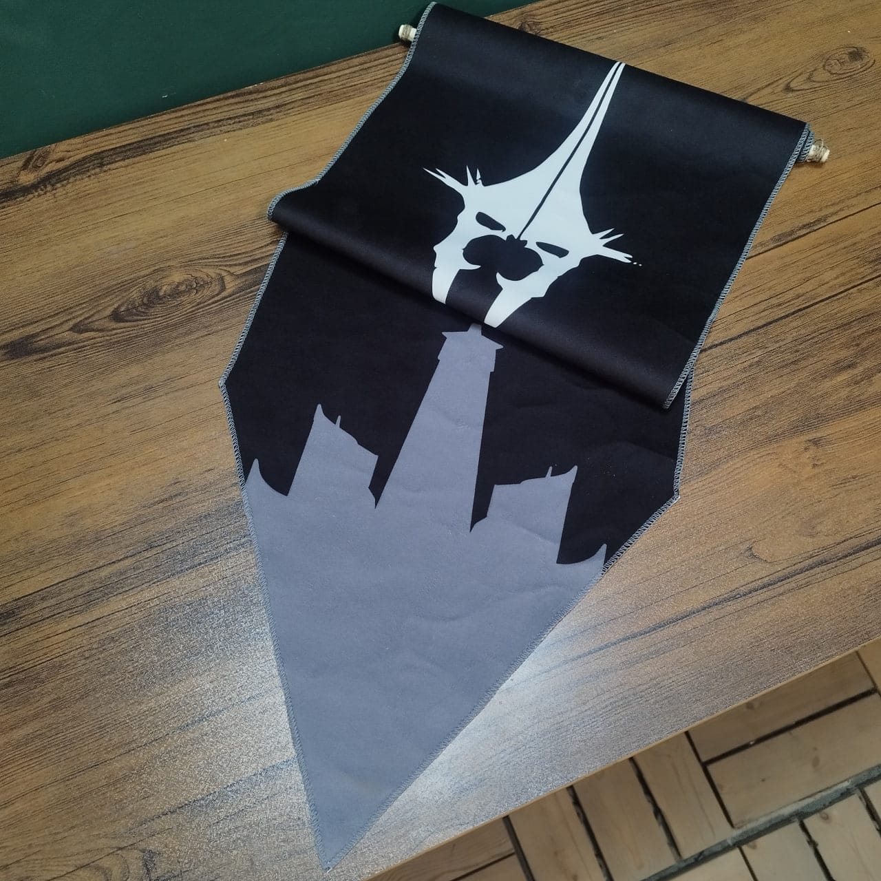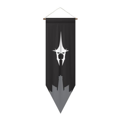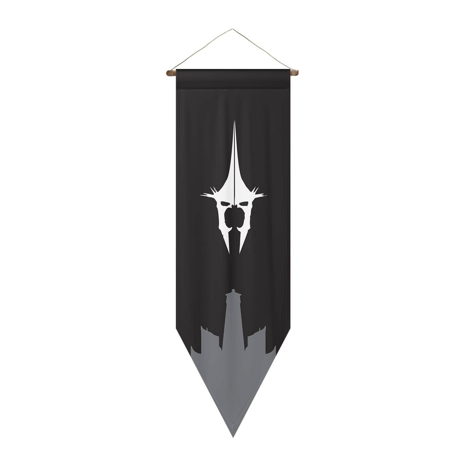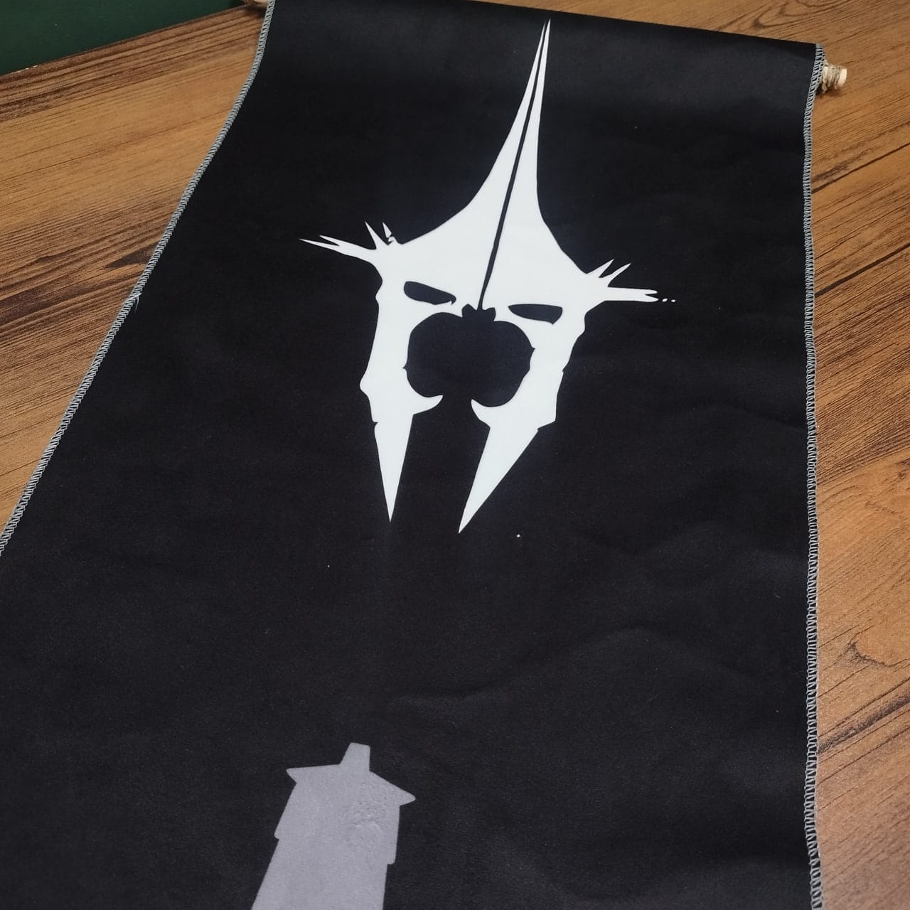 پرچم ویچ کینگ از جهان ارباب حلقه ها (تالکین) با جنس مخمل آستردار باکیفیت، چاپ باکیفیت و بادوام، دور دوخت باکیفیت و دارای چوب و طناب آویز