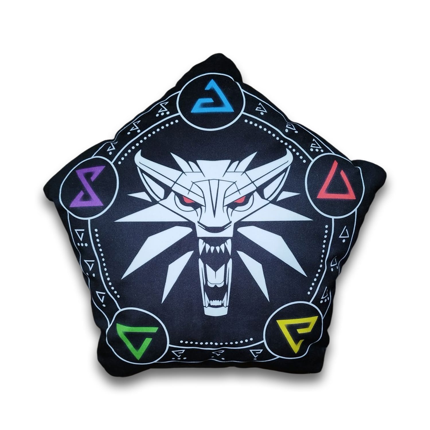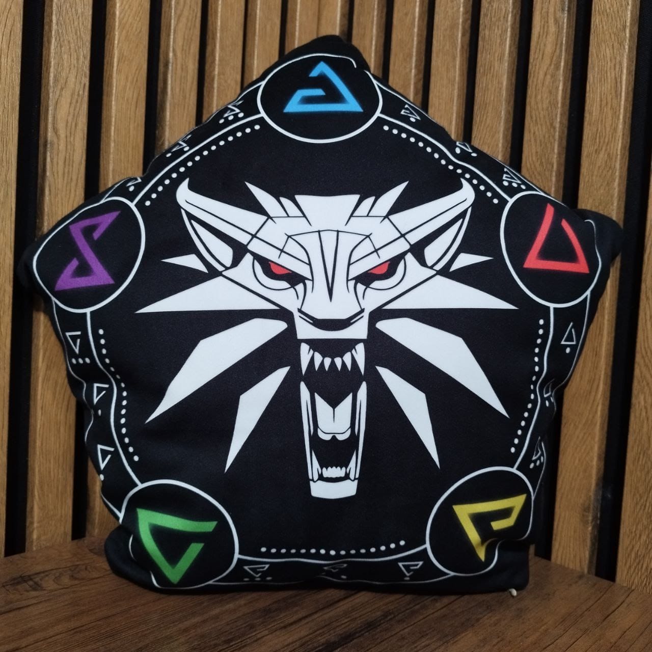 کوسن ساین ویچر، چاپ باکیفیت و بادوام بر روی مخمل آستردار باکیفیت، پر شده با بهترین الیاف، قابل شستوشو و دارای زیپ