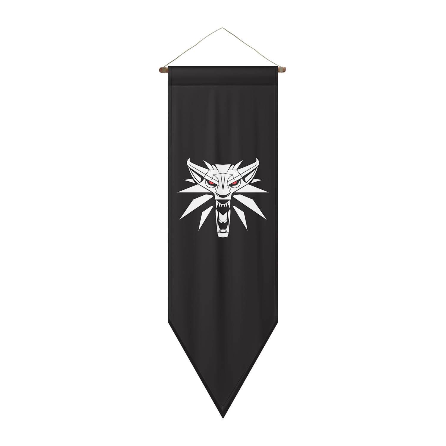 پرچم مکتب گرگ ویچر از جنس مخمل آستردار باکیفیت، چاپ باکیفیت و بادوام، دور دوخت باکیفیت و دارای چوب و طناب آویز